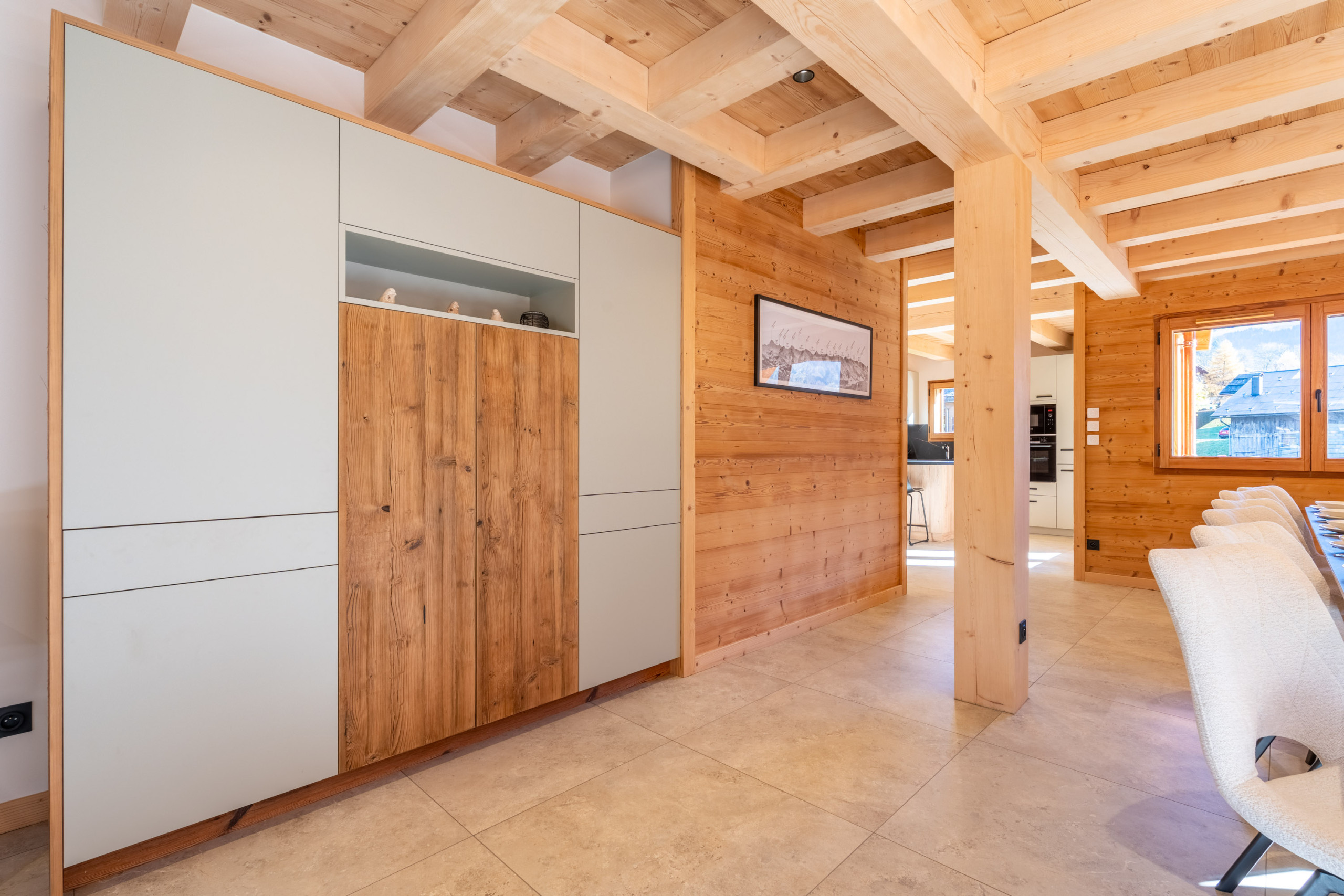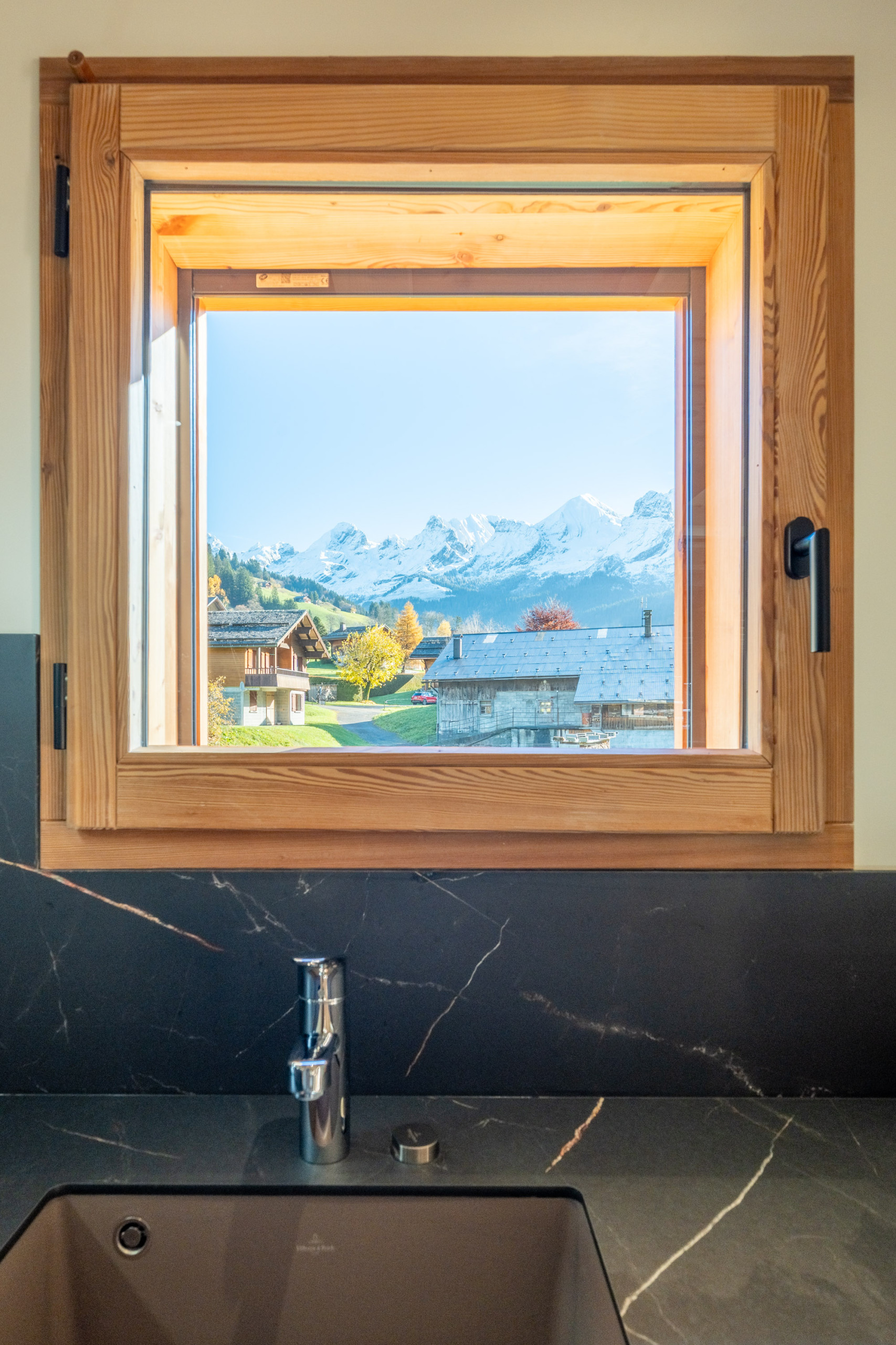 o Large living area: integrated kitchen open to the dining room and living room, large bay windows offering a view of the mountains and direct access to the terrace/balcony.